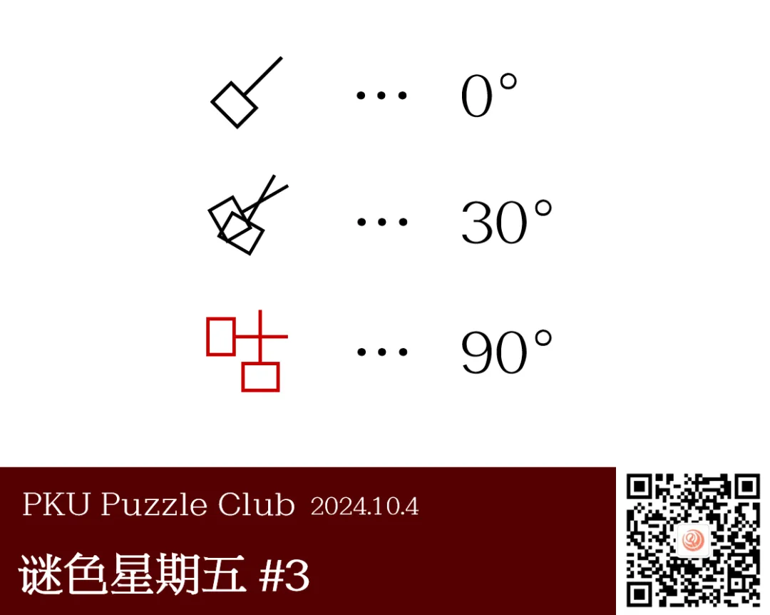 将左侧的图形看作剪刀,右侧的度数则是两个形状张开的角度。在张开的角度是 90 度时,正好能够形成“咕”这个汉字。