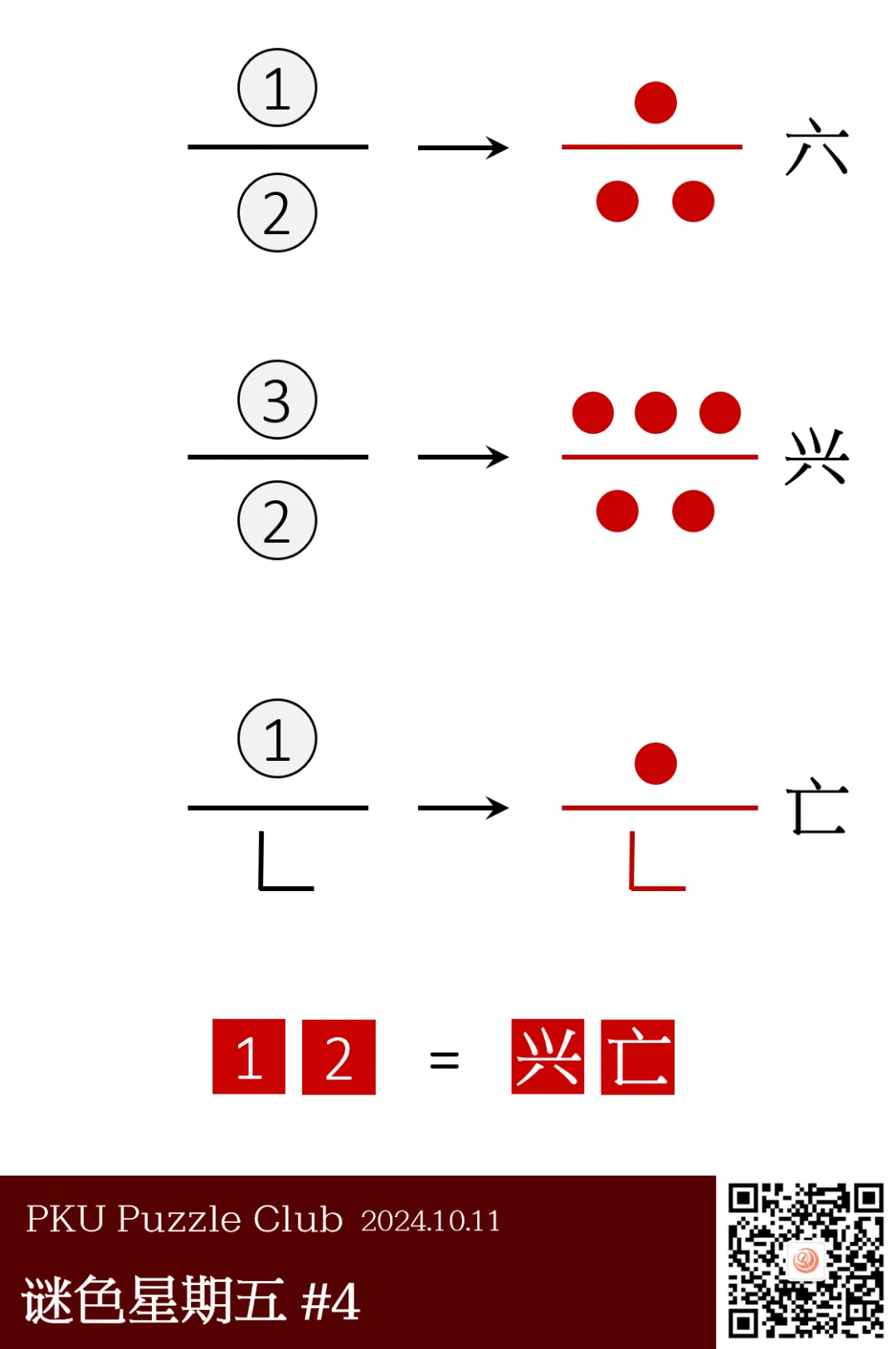所以下面两个式子的结果分别是兴(上面三个点&下面两个点)和亡(上面一个点&下面“L”字)得到答案:兴亡。